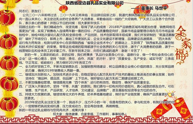 > 定邊乳業(yè)董事長:馬世平元旦致辭